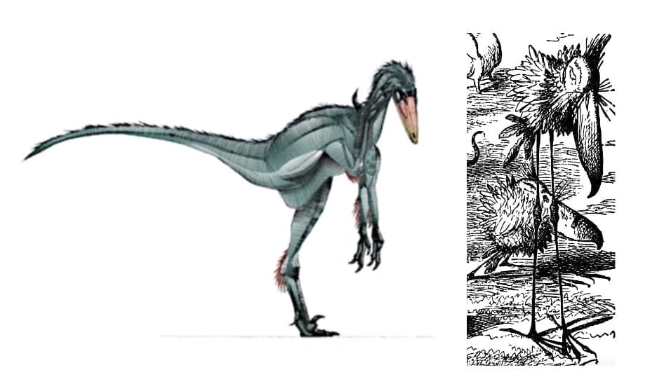 Lewis Carroll created many fantastical creatures for Wonderland and one of his creations lent its name to a wondrous creature of Earth - a dinosaur. The Borogovia was a small theropod (hollow bones and three toes and claws on each limb) that lived 66-84 million years ago and was first discovered in the 1970s in southern Mongolia. The Borogovia, which belongs to the group of dinosaurs that evolved into birds, reminded paleontologist Halszka Osmolska of another avian creature - Lewis Carroll’s borogoves. Borogoves are mentioned in the poem “Jabberwocky” and Humpty Dumpty describes a borogove as “a thin shabby-looking bird with its feathers sticking out all round—something like a live mop.” The spindly legs of the dinosaur certainly evoke the characteristics of its Wonderland namesake and it's fitting that fiction became fact and this feathered Wonderlander lives on in an ancestor of birds that once roamed Earth.