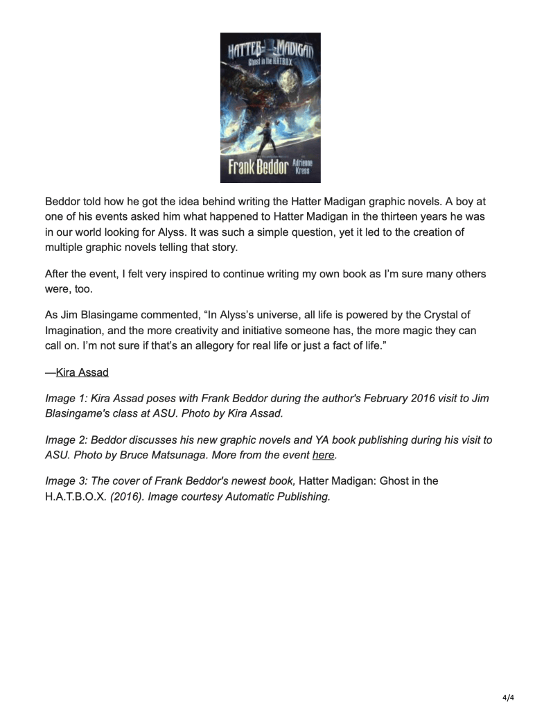 Read the original text of Kira Assad’s article - “Privileged Imagination: What I Learned from Frank Beddor”