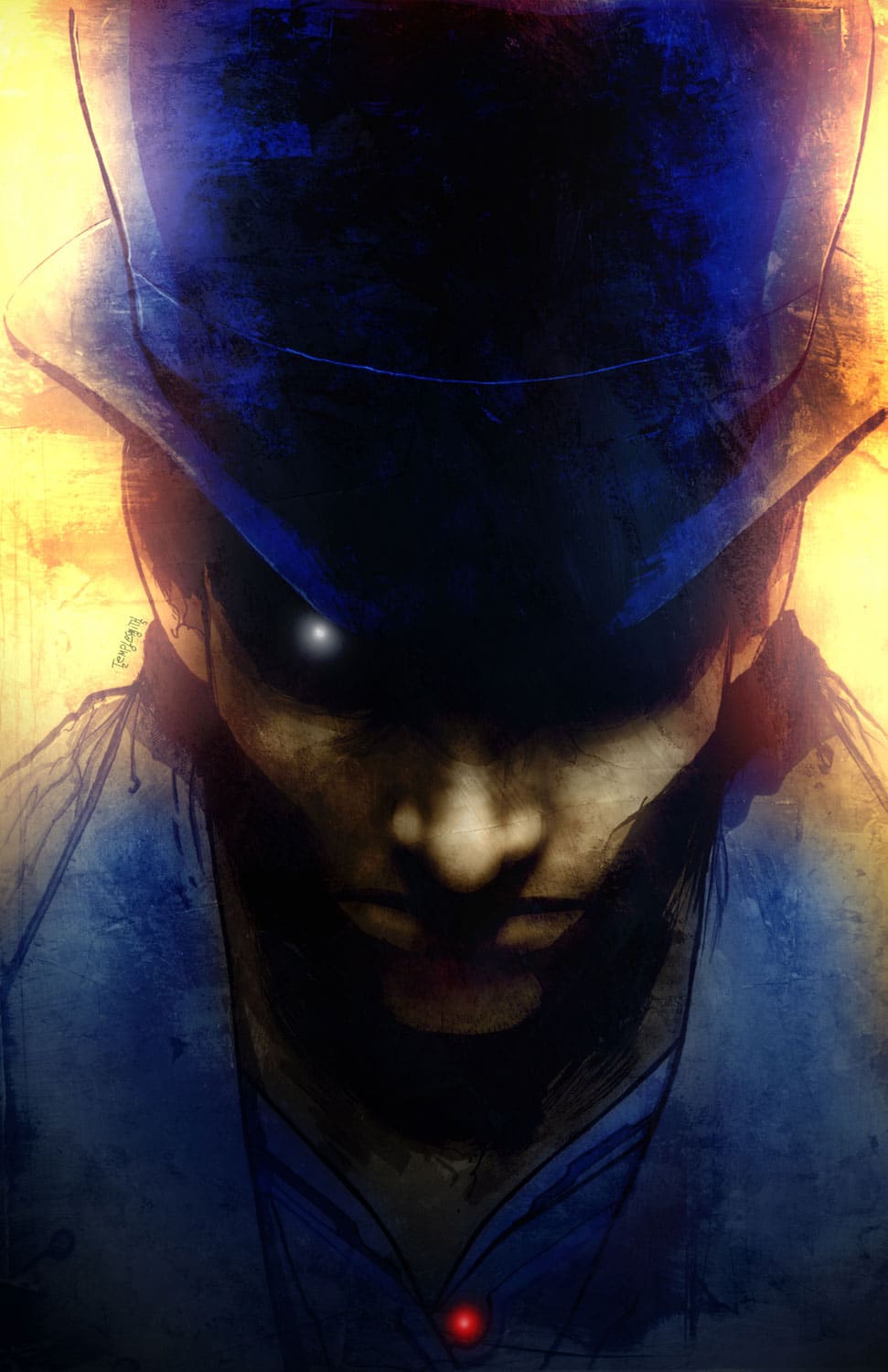 Hatter Madigan, the real Mad Hatter – Art by Eisner Award winner Bill Sienkiewicz, known for his work on Marvel Comics’ Moon Knight, New Mutants, and Elektra: Assassin.