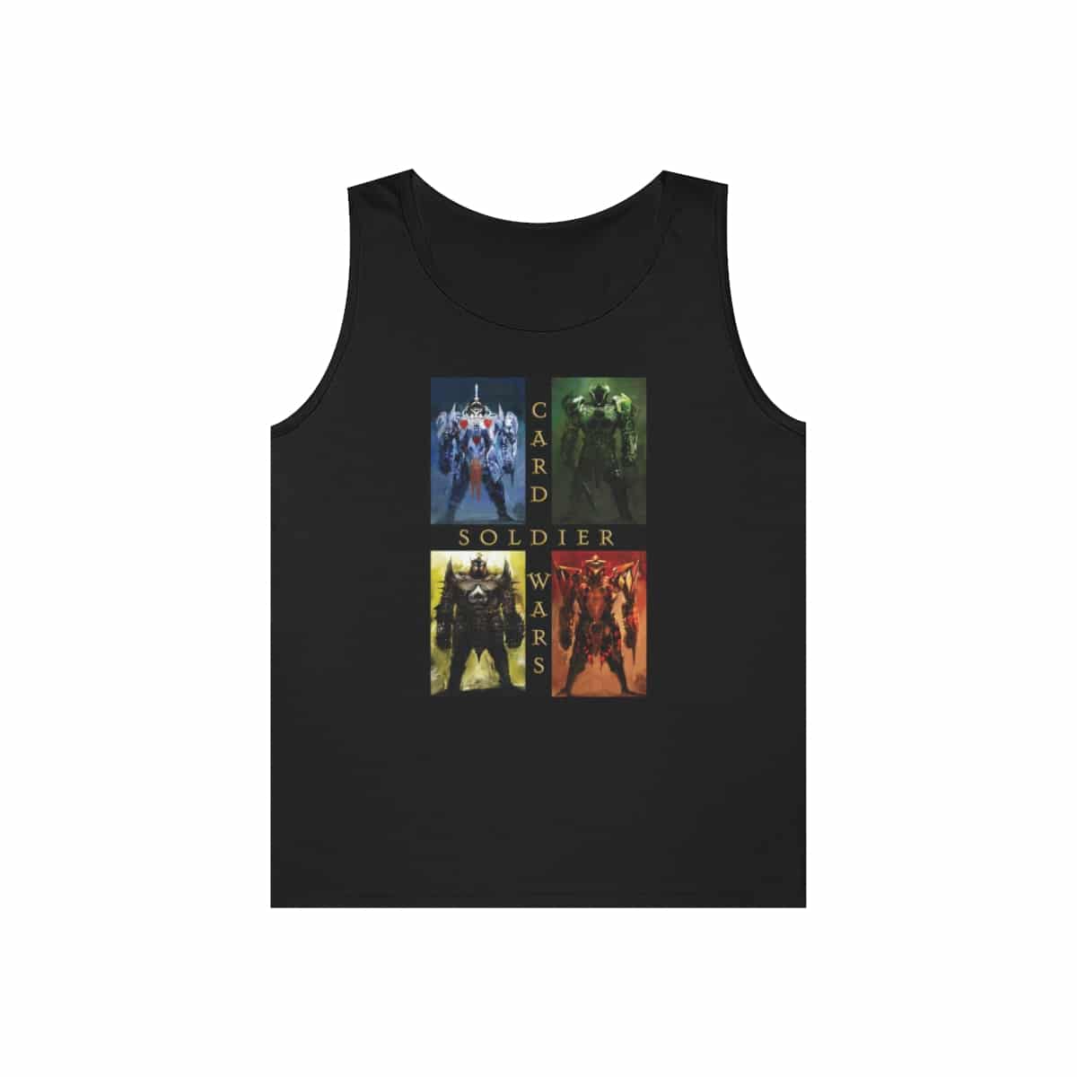 Join the War for Wonderland and show your Suit Family allegiance with the Card Soldiers from Frank Beddor's Wonderverse! For those who cannot pick a favorite faction, this is the shirt for you! For your next mission to the Valley of Mushrooms, training in the HATBOX, or for a casual day out - this unisex cotton tank top is perfect for any occasion.