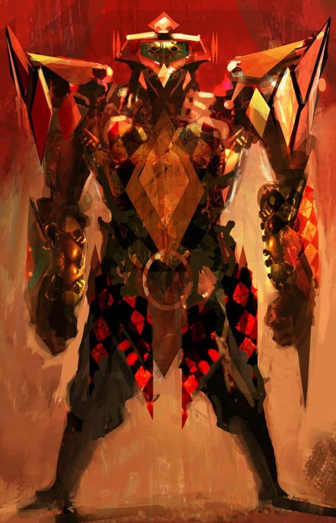 A 11 x 17 print of the "Diamond Mauler Card Soldier" – by Stephan Martiniere, known for his work on Madame Web and The Guardians of the Galaxy.