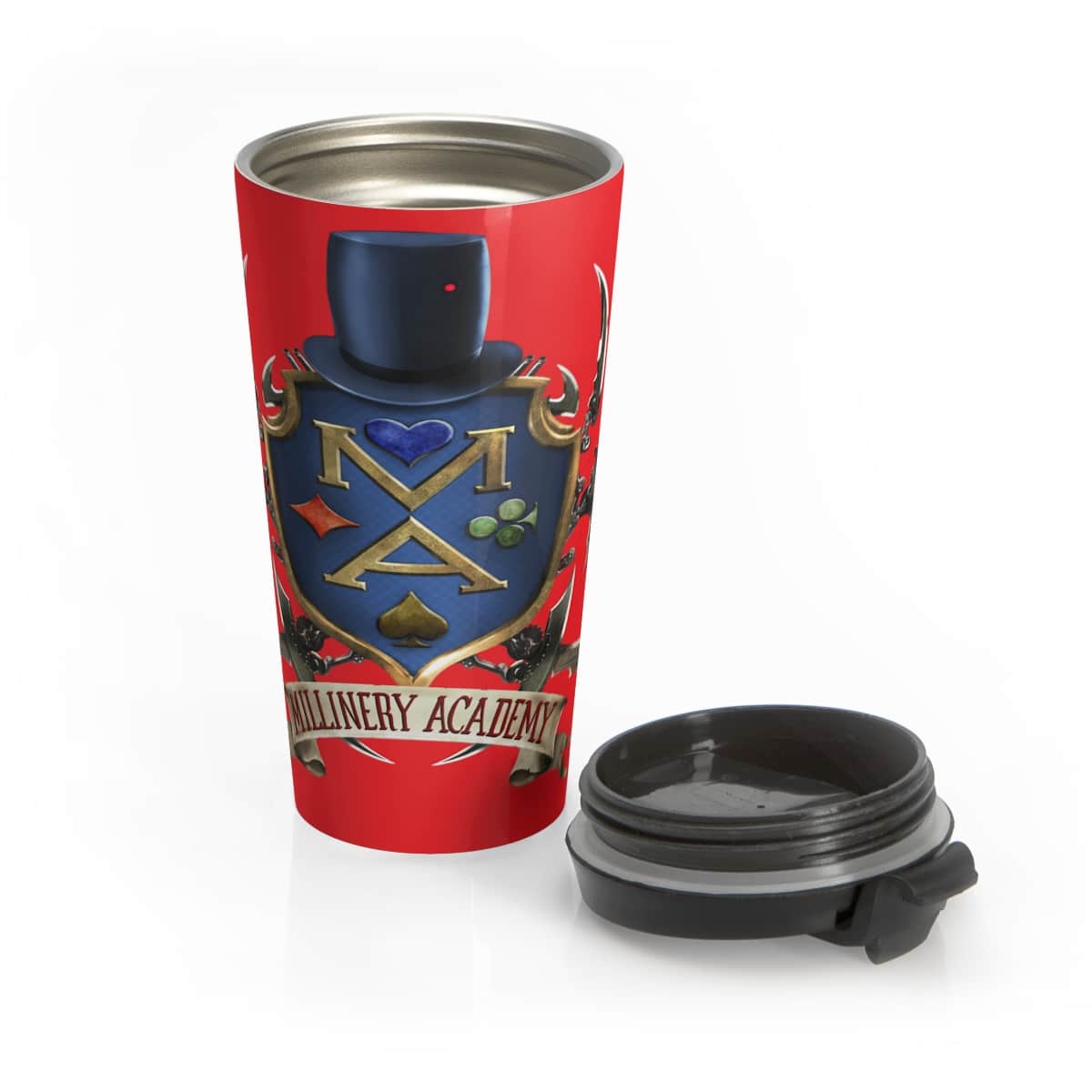 Millinery Academy Crest Stainless Steel Travel Mug (Red)